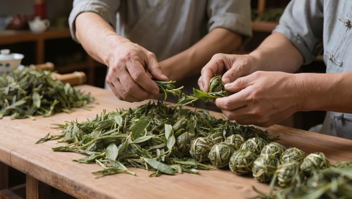 - Rolagem das folhas, criando pequenas bolas que preservam sabor e aroma