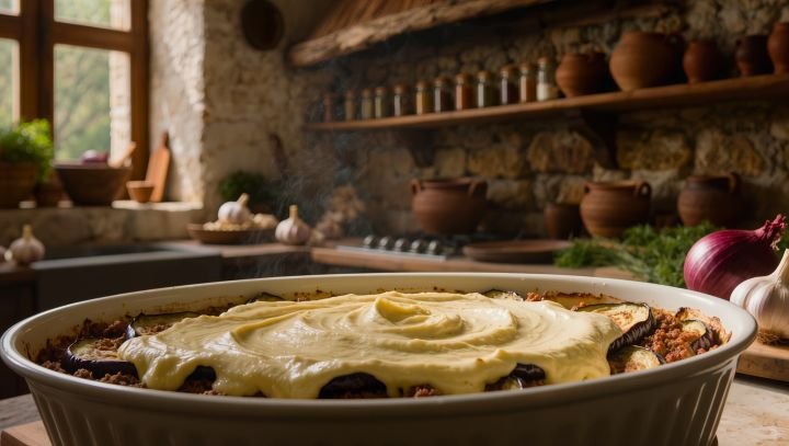 Na culinária grega, o Béchamel cobre o prato tradicional Moussaka, criando uma crosta dourada quando gratinado.