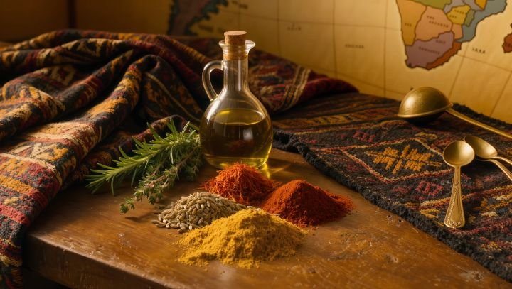 O clima da região — quente e seco — favorece o cultivo de ervas aromáticas e especiarias, que são a base da Chermoula. Além disso, a proximidade com o Mediterrâneo garante acesso a azeite de oliva de alta qualidade, um ingrediente essencial.