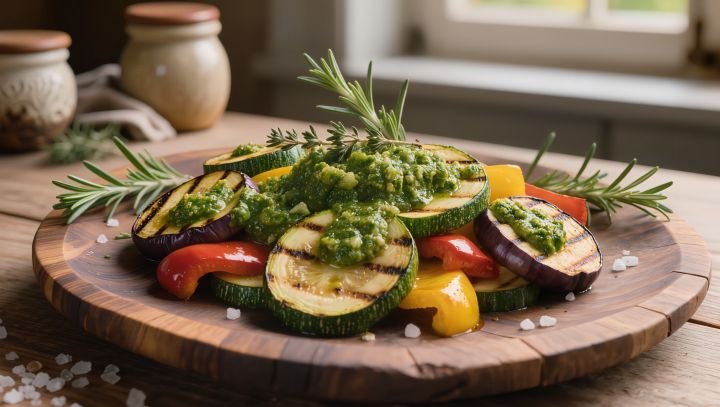 • Legumes grelhados ou assados, como pimentões, abobrinhas, berinjelas e aspargos, recebem frescor e aroma do molho.
