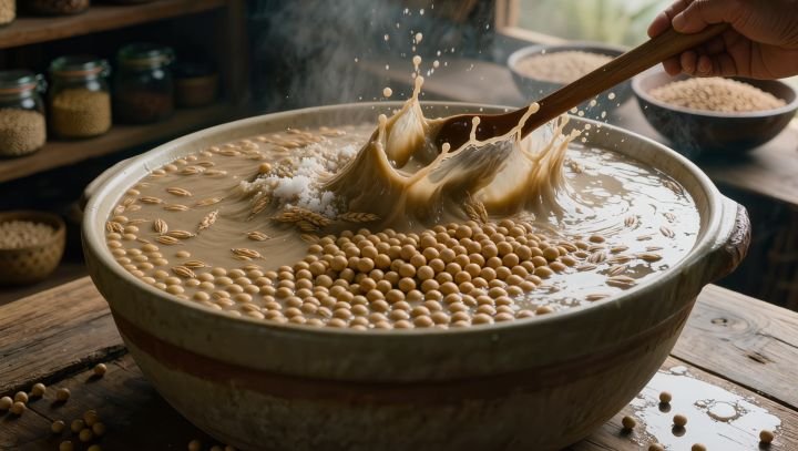A produção tradicional do molho de soja é um processo longo e cuidadoso, baseado na fermentação natural.