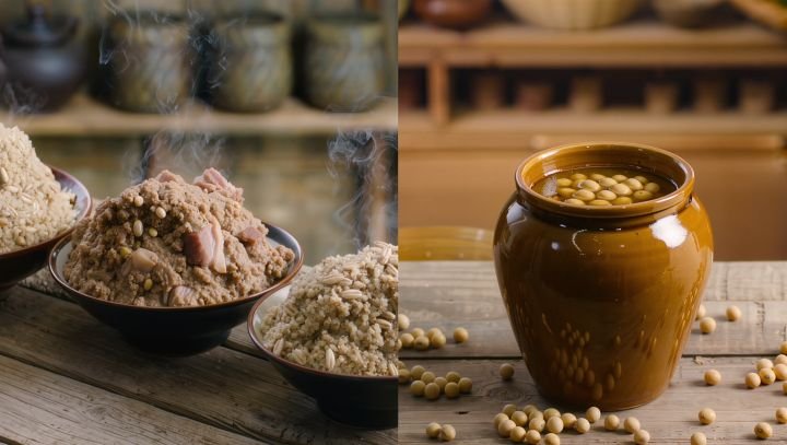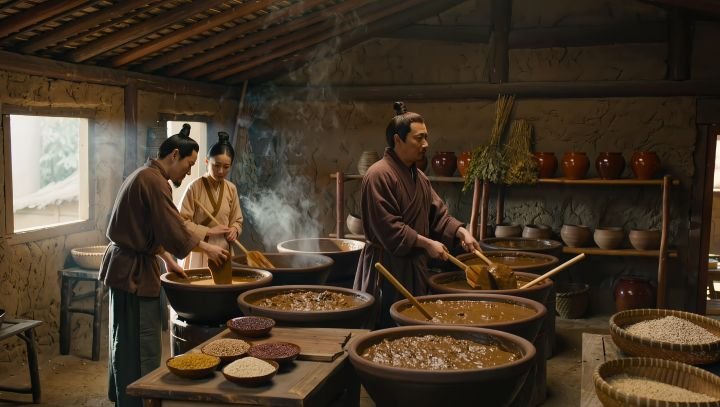 Originalmente, o molho de soja evoluiu a partir de pastas fermentadas chamadas “jiang”, que eram feitas com carne, peixe ou grãos e utilizadas para conservar alimentos e intensificar sabores. Com o tempo, especialmente durante a dinastia Han (206 a.C. – 220 d.C.), surgiu uma versão baseada exclusivamente em soja, tornando-se mais acessível e versátil.