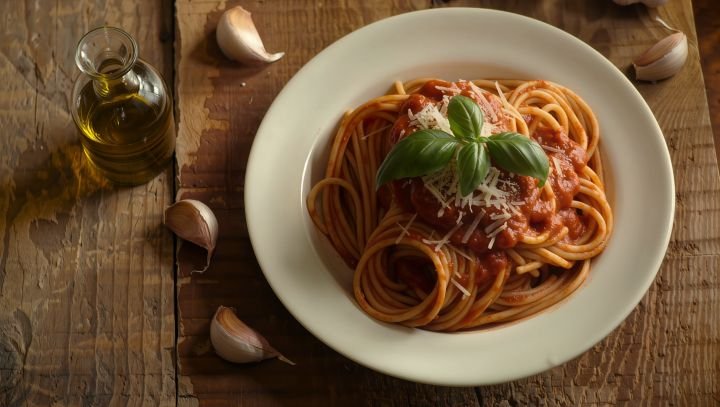 Um dos usos mais famosos do molho de tomate é em pratos de massa, como Espaguete.