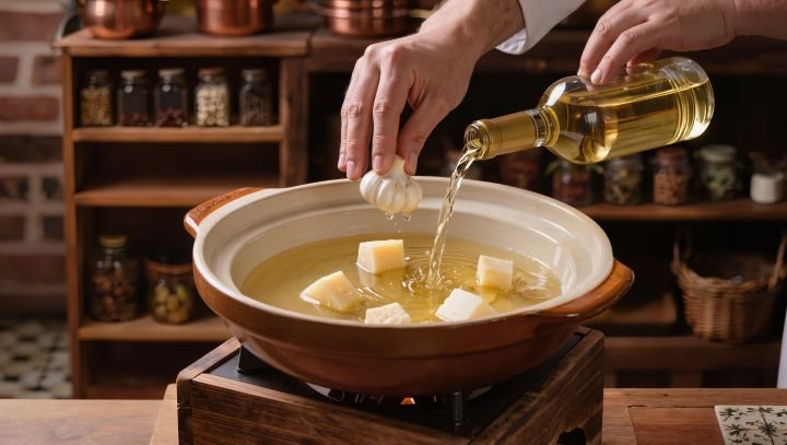 A preparação do fondue de queijo é simples, mas exige técnica para alcançar a textura perfeita.