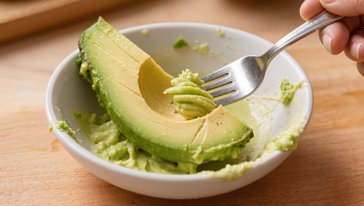 - Descasque e amasse o abacate até obter uma pasta homogênea.