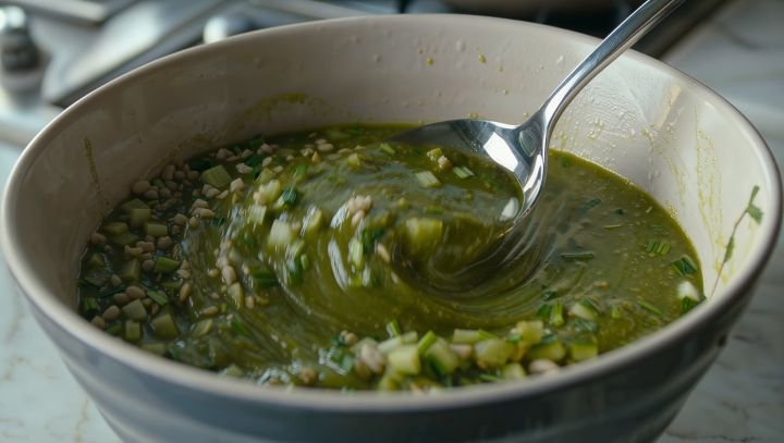 A preparação do Guasacaca requer atenção à frescura dos ingredientes e equilíbrio entre acidez, picância e cremosidade.