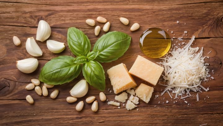 O ingrediente principal do pesto é o manjericão fresco. Este fornece: