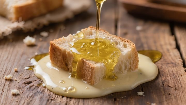 Se utilizado, o pão é previamente embebido em vinagre e depois incorporado na mistura.