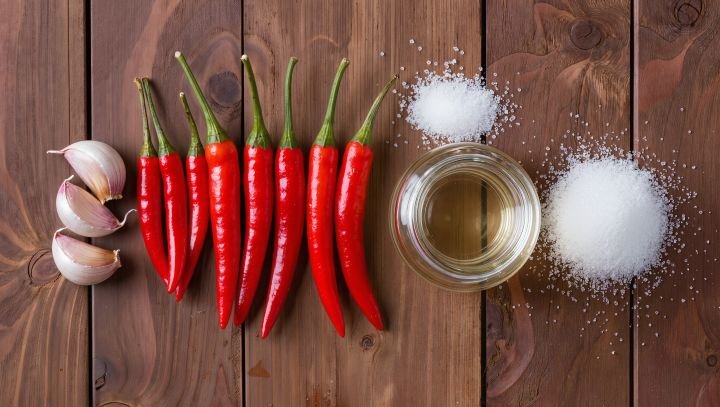 - Pimentas vermelhas frescas