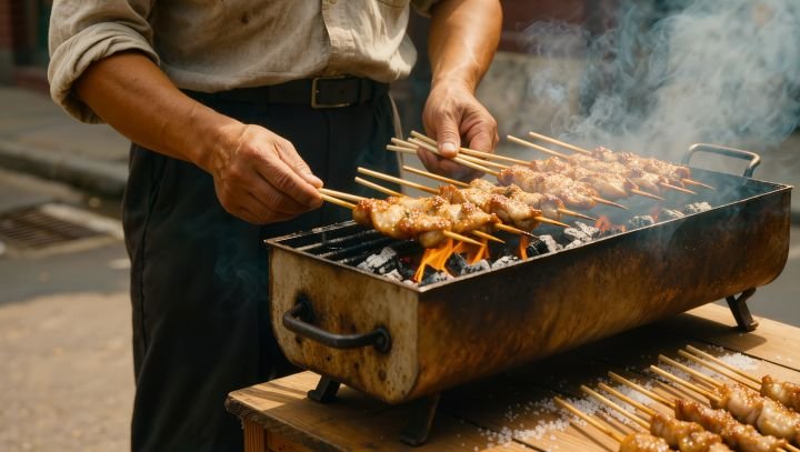 Com a urbanização crescente e o desenvolvimento das cidades, surgiram as primeiras bancas de comida de rua que serviam espetadas de frango grelhado. Estas espetadas eram simples, acessíveis e rápidas de preparar, tornando-se populares entre trabalhadores urbanos.
