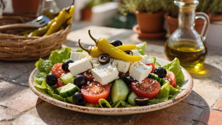 O pepperoncini é um ingrediente indispensável da autêntica salada grega (horiatiki). A sua acidez equilibra a riqueza do queijo feta e das azeitonas, enquanto a picância suave acrescenta profundidade ao prato. Em muitos restaurantes gregos, o pepperoncini é servido inteiro ao lado da salada, permitindo que cada comensal ajuste a intensidade do sabor ao seu gosto.